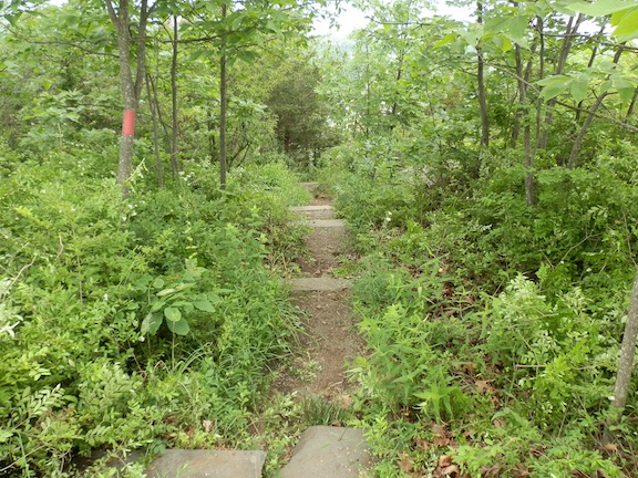 Invasive privet lines the Red Trail as it approaches the South Overlook. Even when cut to the ground, this invasive plant will quickly grow back. |